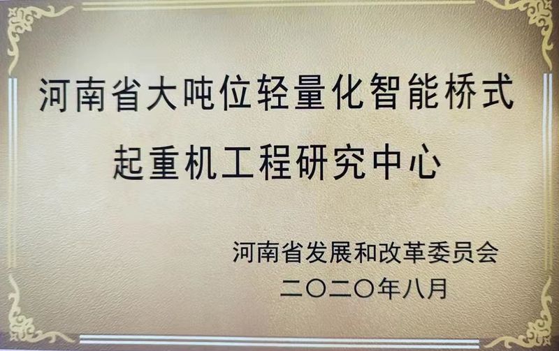 河南省大吨位轻量化智能桥式起重机工程研究中心