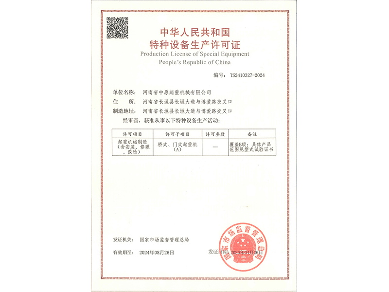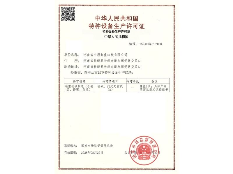 特种设备生产许可证