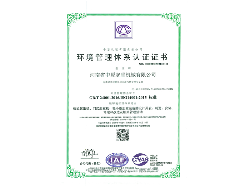 环境管理体系认证证书