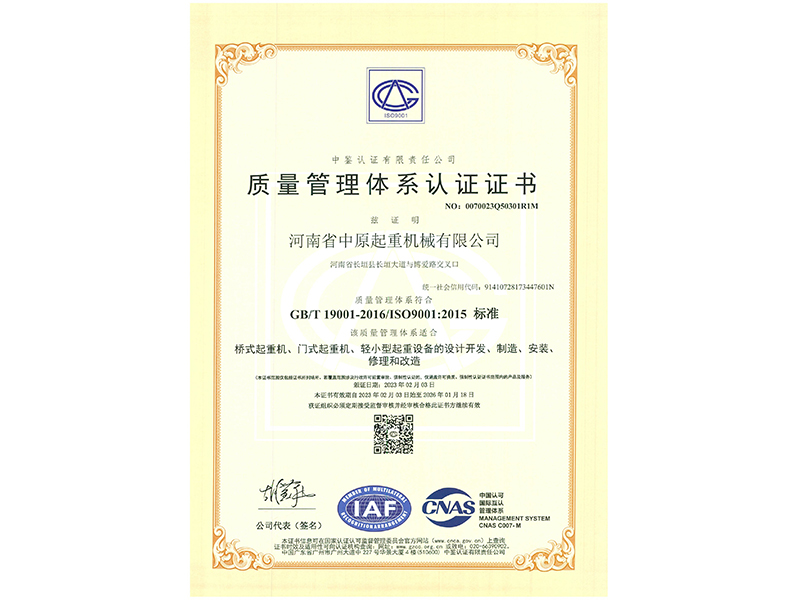 质量管理体系认证证书